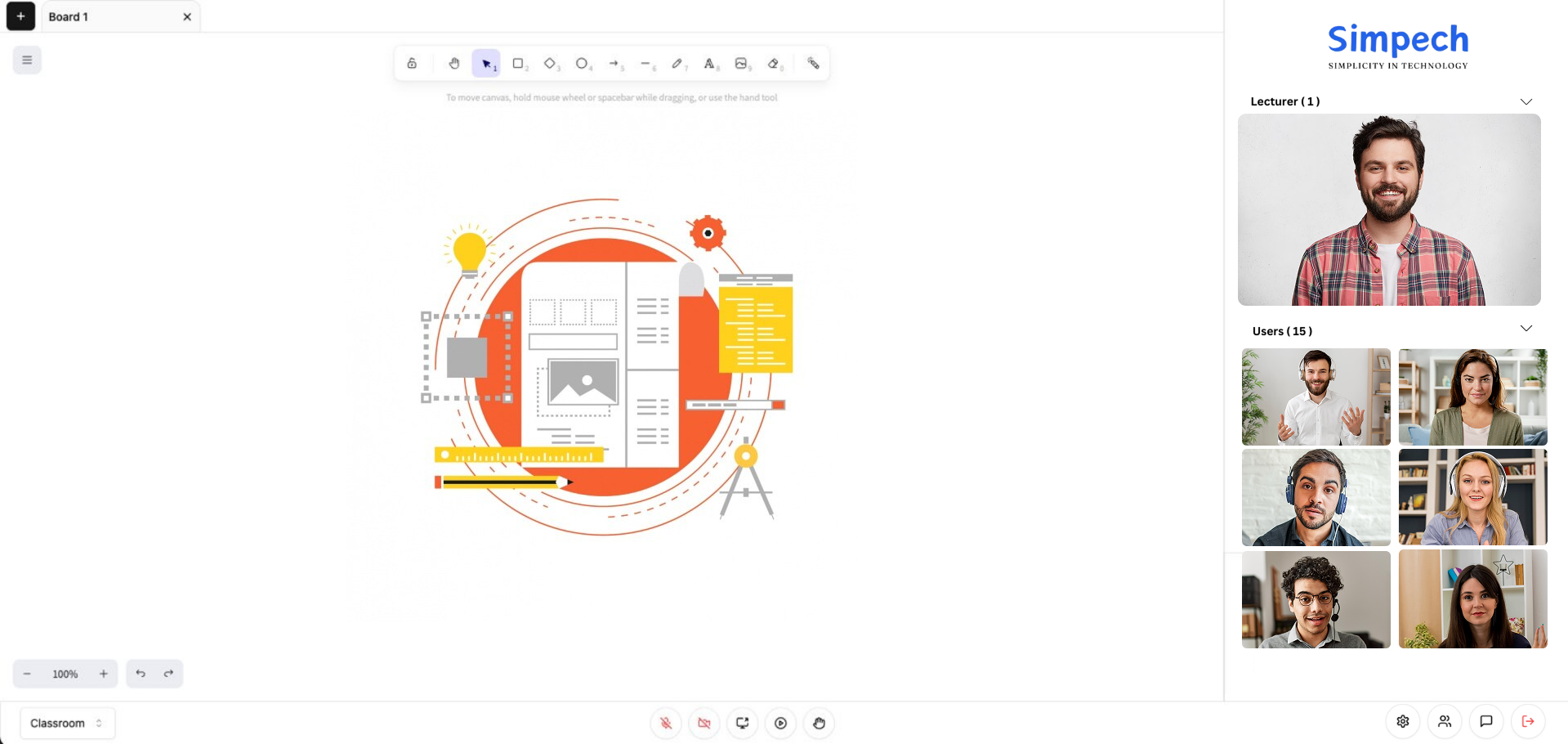 Moving to online teaching doesn't have to be confusing. Simpech provides a virtual classroom that makes lessons fun, organized, and engaging. Connect better with students, keep them interested with hands-on tools, and make your job easier with everything in one place.