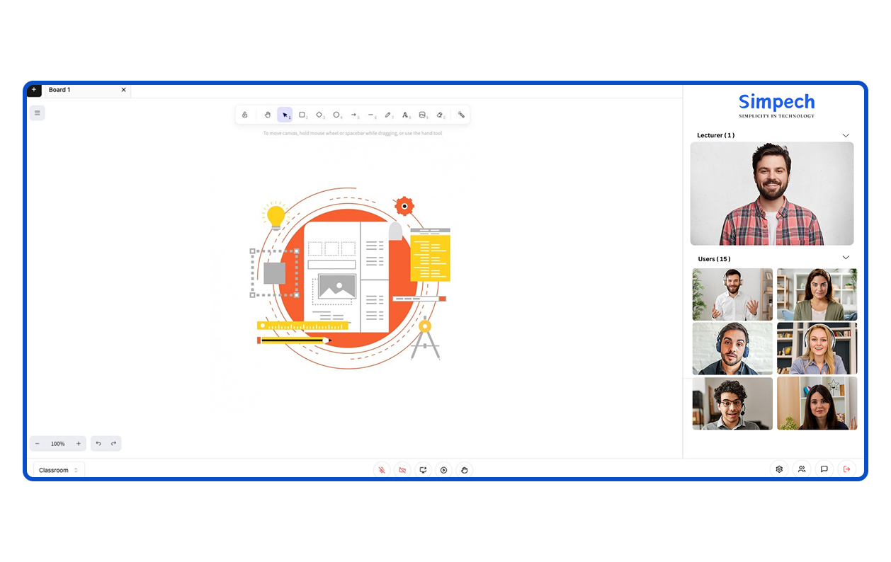 Moving to online teaching doesn't have to be confusing. Simpech provides a virtual classroom that makes lessons fun, organized, and engaging. Connect better with students, keep them interested with hands-on tools, and make your job easier with everything in one place.